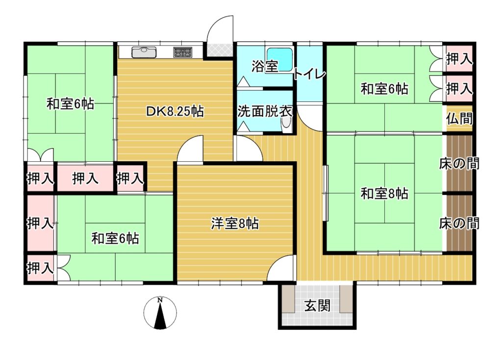 | 間取り | 5DK 和6 6 6 8 洋8 DK8.25 | 建物面積 | 1F 119.24㎡ |